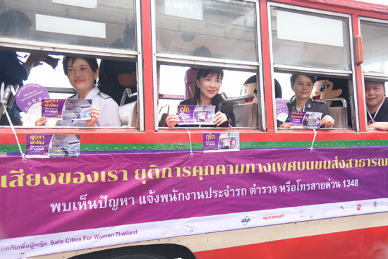 น.ส.รุ่งทิพย์ อิ่มรุ่งเรือง ผู้จัดการฝ่ายนโยบายองค์การแอ็คชั่นเอด ประเทศไทย กล่าวว่า ปัจจุบันผู้หญิงที่อาศัยอยู่ในเขตเมืองมีความเสี่ยงต่อปัญหาความรุนแรงทางเพศ โดยเฉพาะผู้ที่พักอาศัยในชุมชนแออัด ที่ต้องใช้บริการขนส่งสาธารณะในเวลากลางคืน จัดเป็นกลุ่มเสี่ยงต่อการถูกคุกคามทางเพศสูงสุด สะท้อนจากข้อมูลปี 2552-2556 มีจำนวนคดีข่มขืนสูงถึง 30,000 คดีต่อปีที่น่าห่วงคือมีผู้เสียหายเข้าแจ้งความเพียง 4,000 คดี หรือเพียง 13% ของจำนวนคดีที่เกิดขึ้นทั้งหมดเท่านั้น ล่าสุด กองบัญชาการตำรวจนครบาล (บช.น.) ได้ประกาศว่า กทม. มีจุดเสี่ยงต่อความไม่ปลอดภัยสูงถึง 217 แห่ง ดังนั้น ปัญหาความไม่ปลอดภัยของผู้หญิงจึงเป็นที่มาของกิจกรรมรณรงค์ครั้งนี้ ซึ่งตรงกับวันสตรีสากล 8 มี.ค.เพื่อสร้างความตระหนักถึงสิทธิของผู้ใช้บริการขนส่งสาธารณะ ที่จะเดินทางได้อย่างปลอดภัย ไร้อันตรายทุกรูปแบบ โดยแคมเปญ ‘เมืองปลอดภัยเพื่อผู้หญิง’ เป็นการรณรงค์ในระดับนานาชาติ ในประเทศไทยปีนี้เราเริ่มที่กรุงเทพฯและเขตปริมณฑลก่อน โดยมีรถเมล์ ขสมก. เป็นต้นแบบของขนส่งสาธารณะที่ช่วยป้องกันและลดภัยจากการคุกคามทางเพศ