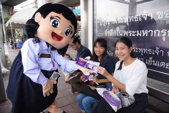 เมื่อวันที่ 8 มี.ค. 2560 ที่บริเวณเกาะพญาไท อนุสาวรีย์ชัยสมรภูมิ เครือข่ายเมืองปลอดภัยเพื่อผู้หญิง ซึ่งประกอบด้วย องค์การแอ็คชั่นเอด ประเทศไทย เครือข่ายสลัมสี่ภาค และมูลนิธิหญิงชายก้าวไกล พร้อมด้วยแผนงานสุขภาวะผู้หญิงและความเป็นธรรมทางเพศ ซึ่งได้รับการสนับสนุนจากสำนักงานกองทุนสนับสนุนการสร้างเสริมสุขภาพ (สสส.) ร่วมกับชมรมพนักงานสอบสวนหญิง และองค์การขนส่งมวลชนกรุงเทพ จัดกิจกรรมรณรงค์เนื่องในวันสตรีสากล ประจำปี 2560 ภายใต้แคมเปญ 'เมืองปลอดภัยเพื่อผู้หญิง' (Safe Cities for Women) โดยชูประเด็นหยุดการคุกคามทางเพศบนระบบขนส่งสาธารณะ จากนั้น นางปานจิต จินดากุล ผู้ช่วยรองปลัดกระทรวงคมนาคม และผู้แทนหน่วยงานต่าง ๆ ร่วมทำกิจกรรมเชิงสัญลักษณ์ เป่านกหวีด และติดสติกเกอร์รณรงค์หยุดการคุกคามทางเพศบนรถโดยสาร ขสมก.