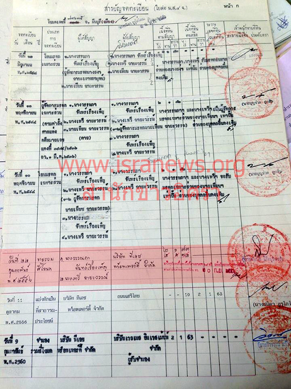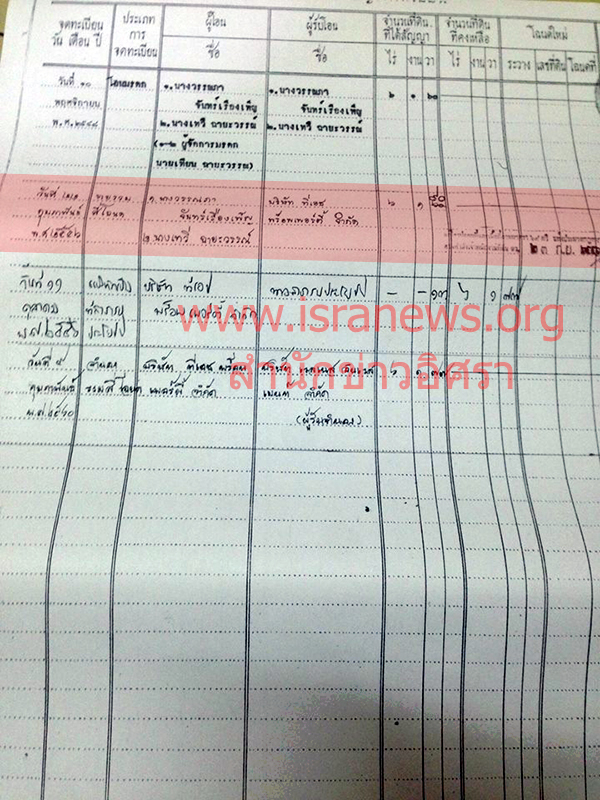 ล่าสุด สำนักข่าวอิศรา www.isranews.org ตรวจสอบพบว่า สารบัญจดทะเบียนโฉนดที่ดินทั้ง 4 แปลง ของ บริษัท ทีเอช พร็อพเพอร์ตี้ จำกัด พบว่า ระบุเจ้าของเดิมมี 2 คนชื่อ นางวรรณภา จันทร์เรืองเพ็ญ และ นางเทวี ฉายะวรรณ์ (ดูเอกสารประกอบ)