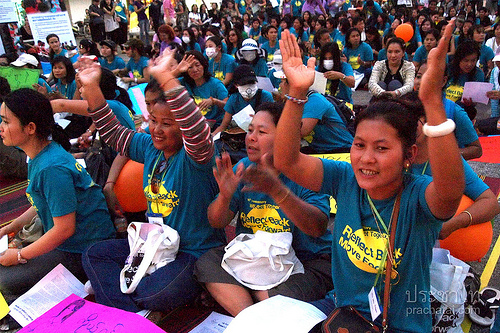 36 องค์กร 1,000 คนร่วมประกาศเจตนารมณ์ “วันสตรีสากล” ให้หญิงทำงานใน-นอกระบบ-แรงงานภาคเกษตร รับค่าตอบแทนเป็นธรรม เข้าระบบประกันสังคม มีสวัสดิการตั้งแต่เกิดจนตาย ห้ามเลิกจ้างคนท้อง จัดศูนย์เลี้ยงเด็กในชุมชน โรงงาน