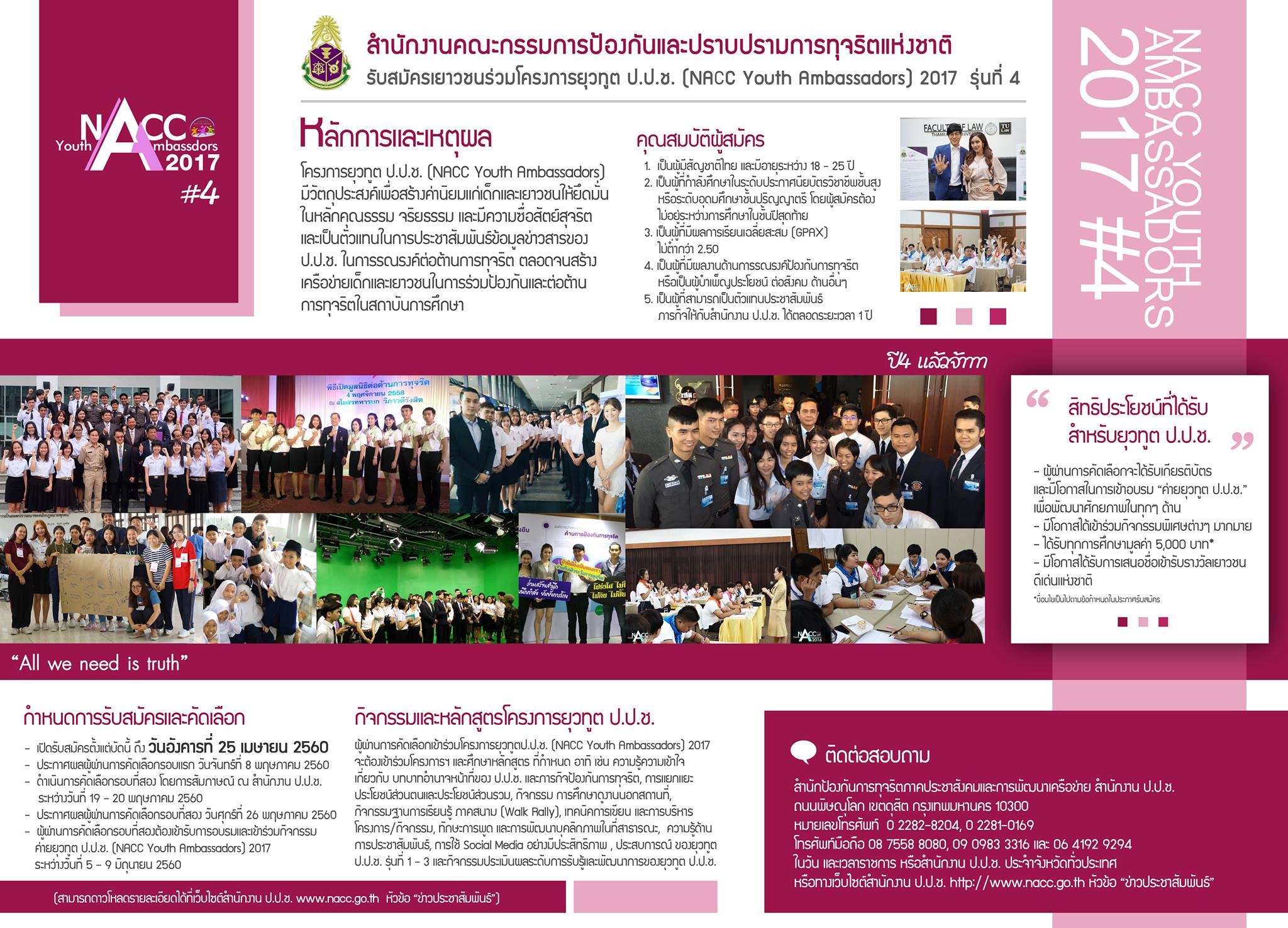 ป.ป.ช. เปิดรับสมัครเยาวชนเข้าร่วมโครงการยุวทูต ปี 2017