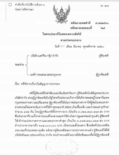 ศาลปกครองกลางสั่งคุ้มครองชั่วคราว ให้องค์การขนส่งมวลชนกรุงเทพ ตรวจรับรถยนต์โดยสารปรับอากาศ NGV ที่ออกจากอารักขาของศุลกากรแล้ว ก่อนศาลมีคำพิพากษาหรือมีคำสั่งเป็นอย่างอื่น