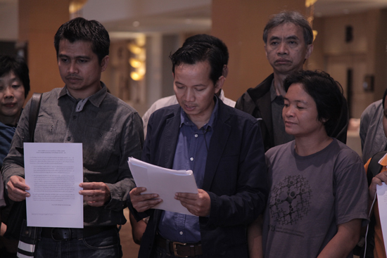โดยนายคำรณ ชูเดชา ผู้ประสานงาน ขสบ.เป็นตัวแทนอ่านแถลงการณ์ดังนี้