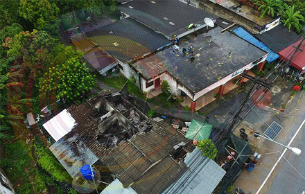 บรรยายภาพ : ภาพถ่ายจากมุมสูงของจุดตรวจร่วมกรงปินังที่ถูกคนร้ายบุกโจมตีล่าสุด