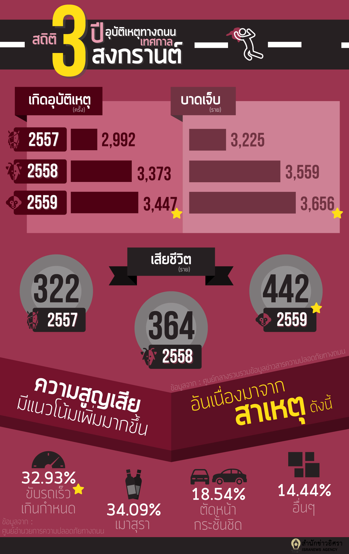 INFO : สถิติ 3 ปีอุบัติเหตุทางถนนเทศกาลสงกรานต์