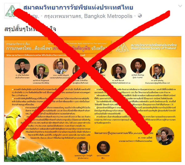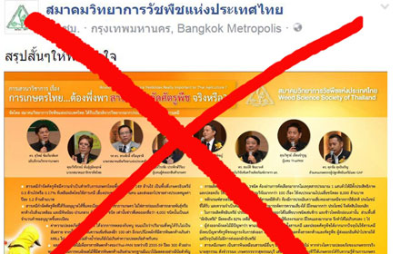 ไบโอไทย วอนสมาคมวิทยาการวัชพืชฯ หยุดแพร่ ข้อมูลเรื่องสารเคมีกำจัดศัตรูพืช ยันไม่ใช่เนื้อหาที่นำเสนอในเวทีเสวนาวิชาการแต่อย่างใด หวั่นส่งผลต่อความน่าเชื่อถือ