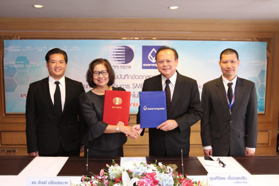 นายศิริเดช เอื้องอุดมสิน รองผู้จัดการใหญ่ (ที่ 2 จากขวา) และนายมกรา โกศัลวิตร เจ้าหน้าที่บริหารระดับ Vice President สายลูกค้าธุรกิจรายปลีก (ขวา) ธนาคารกรุงเทพ จำกัด (มหาชน) ร่วมกับ ดร.ลักษมี ปลั่งแสงมาศ ผู้ว่าการสถาบันวิจัยวิทยาศาสตร์และเทคโนโลยีแห่งประเทศไทย (วว.) กระทรวงวิทยาศาสตร์และเทคโนโลยี (ที่ 2 จากซ้าย) และนายตรันต์ สิริกาญจน ผู้อำนวยการกองบริการธุรกิจ (ซ้าย) ลงนามบันทึกข้อตกลงความร่วมมือ โครงการส่งเสริมศักยภาพผู้ประกอบการ SMEs วิสาหกิจขนาดเล็ก (Micro Enterprises) และวิสาหกิจชุมชน (OTOP) เพื่อสนับสนุนให้เกิดการนำวิทยาศาสตร์ เทคโนโลยีและนวัตกรรม (วทน.) ไปใช้ในการประกอบธุรกิจ และร่วมกันพัฒนาเครื่องมือทางการเงินทั้งในปัจจุบันและอนาคต เพื่อสนับสนุนให้ผู้ประกอบการมีการพัฒนาศักยภาพและขีดความสามารถในการแข่งขันรวมทั้งพัฒนาคุณภาพมาตราฐานของสินค้าและบริการให้สามารถยกระดับและมูลค่าเพิ่ม จนสามารถตอบสนองความต้องการของตลาดในระดับสากล อีกทั้งก่อให้เกิดการขับเคลื่อนในการสร้างงาน สร้างรายได้ และทำให้ประเทศไทยก้าวสู่ความมั่นคงและยั่งยืน