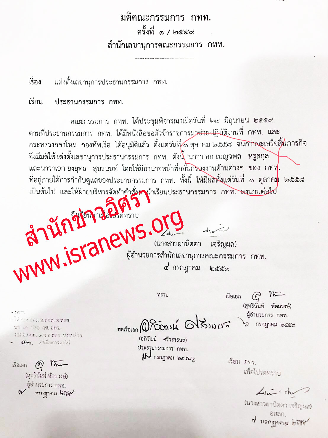 ขณะที่ นาวาเอก เบญจพล หรูสกุล ได้รับการแต่งตั้งเป็นเลขานุการ พลเรือเอกอภิวัฒน์ ศรีวรรธนะ ประธานกรรมการ กทท. เมื่อวันที่ 7 ก.ค.2559 โดยให้การดำรงตำแหน่งมีผลตั้งแต่วันที่ 1 ต.ค.2558 ที่ผ่านมา (ดูเอกสารประกอบ)