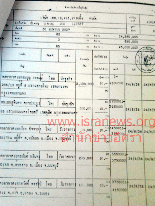 ปี 2539 พล.อ.อ.พิศิษฐ์ ศลิคุปต์ 320,000 หุ้น มูลค่าหุ้นละ 10 บาท