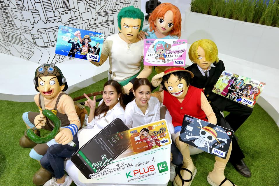 ธนาคารกสิกรไทยผู้นำบัตรเดบิตลายคาแรคเตอร์ เปิดตัวบัตรเดบิตวันพีซกสิกรไทย (K-ONE PIECE Debit Card) บัตรเดบิตลายคาแรคเตอร์ลายพิเศษล่าสุดที่นำการ์ตูนอานิเมะญี่ปุ่นอันโด่งดังจนมีแฟนคลับมากมายทั่วโลกมาใส่ไว้บนหน้าบัตรให้เลือกหลากหลายถึง 5 ลาย ได้แก่ ลายลูฟี่ ลายช็อปเปอร์ ลายธงสัญลักษณ์ประจำกลุ่มโจรสลัดหมวกฟาง ลายรวมลูฟี่ โซโรและซันจิ และลายรวมทีมวันพีช พร้อมมอบสิทธิประโยชน์ต่างๆ เช่น ส่วนลดพิเศษ 5 - 10% เมื่อซื้อสินค้าที่ร้านวันพีซ มูกิวาระ สโตร์ แบงค็อก ดูหนังที่ เอสเอฟ ซีนีม่า ซิตี้ ราคา 100 บาท ซื้อชุดอร่อยสุดคุ้ม พร้อมโคนดิป ครั้นชี่ ราคา 100 บาท ที่แมคโดนัลด์ จองที่พักทั่วโลกที่ อโกด้า และ เอ็กซ์พีเดีย ลดสูงสุด 10% สาวกวันพีชเป็นเจ้าของบัตรเดบิตะวันพีซ กสิกรไทยได้แล้ววันนี้ สมัครง่ายๆ บนแอพพลิเคชั่น K PLUS เท่านั้น “กดปั๊บ รอรับบัตรที่บ้าน” ตั้งแต่วันนี้เป็นต้นไป สอบถามข้อมูลเพิ่มเติมติดต่อ K-Contact Center 02-8888888 หรือ https://www.kasikornbank.com/promotion/issue-debitcard-via-KMB