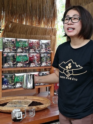 “กาแฟ 3 in 1 เราทำตลาดของฝากเป็นหลัก โรงแรมน่านบูติก น่านภูมิใจ แสงทองรีสอร์ท หรือโรงแรมเทวราช ก็จะเอาซองของเราไปเสียบในห้องพัก ห้องสัมมนา หรือแม้แต่ร้านโอทอป ร้านของฝากที่น่านก็เอาของเราไปวางอยู่”