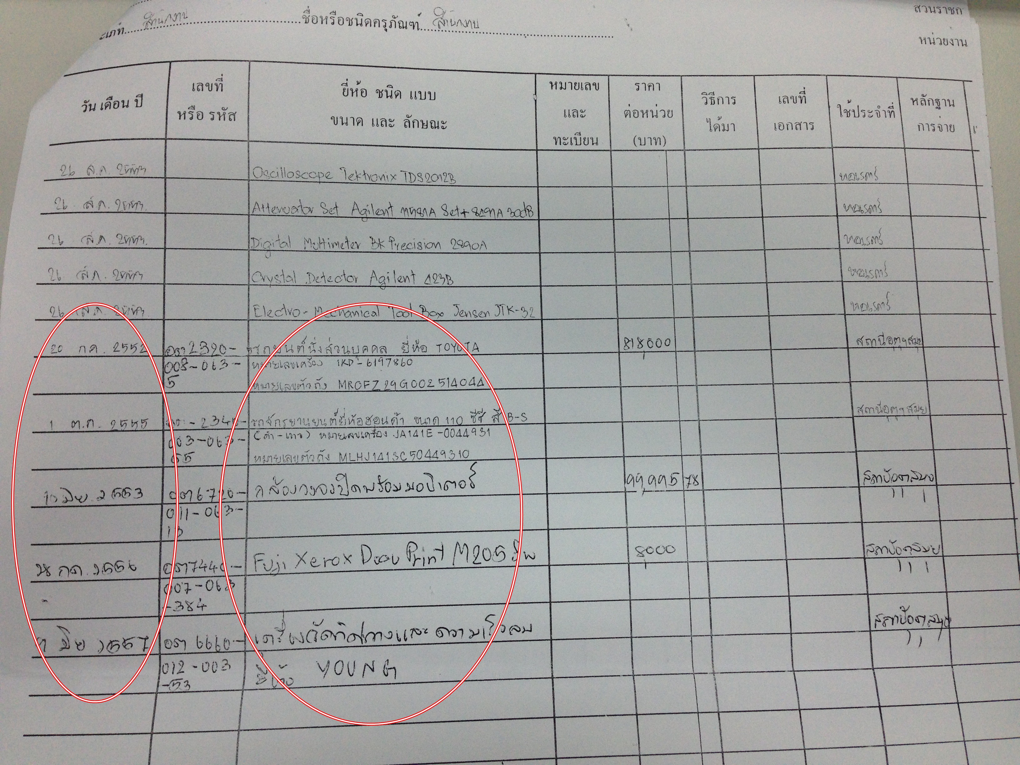 – ระบุวัน เดือน ปี ที่ได้มา ของรายการครุภัณฑ์ไม่ครบถ้วนทุกรายการ จำนวน 30 สถานี
