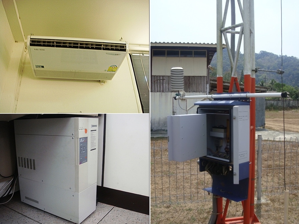 นอกจากนี้ จากการตรวจสอบพบว่าเครื่องมือตรวจวัดและพยากรณ์อากาศส่วนใหญ่เป็นอุปกรณ์ทางอิเล็กทรอนิกส์มีการทำงานอย่างต่อเนื่องตลอดเวลา ซึ่งต้องอยู่ในห้องที่มีความเย็นมากจึงจำเป็นต้องมีเครื่องปรับอากาศ ทั้งนี้จุดที่ติดตั้งเครื่องปรับอากาศควรสอดคล้องสัมพันธ์กับการให้ความเย็นกับเครื่องมือได้อย่างทั่วถึงเพียงพอ และต้องมีการบำรุงรักษาตามรอบระยะเวลาที่เหมาะสม และเครื่องมือบางรายการต้องคำนึงถึงความปลอดภัยในการจัดเก็บและใช้งานด้วย