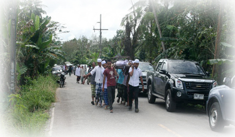 1 ชาวบ้านกำลังแห่ศพเหยื่อของเหตุการณ์ไปฝังยังกุโบร์ หลังเกิดเหตุร้ายเมื่อวันที่ 29 ม.ค.