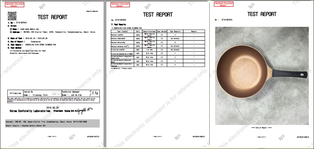 ทั้งนี้ บริษัทฯ ได้แนบเอกสารรับรองระบบการบริหารคุณภาพ รายงานสรุปการทดสอบผลิตภัณฑ์ เอกสารรับรองบริษัทผู้ขาย และเอกสารอื่น ๆ รวม 7 ฉบับ พร้อมภาพถ่าย และคลิปแสดงขั้นตอนการผลิตกระทะโคเรียคิง จากประเทศเกาหลีใต้ ตามลิงค์นี้ มาให้ท่านเป็นข้อมูลเพิ่มเติม
