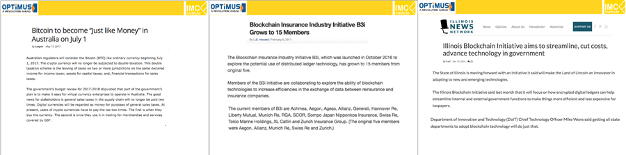 ดร.ธนชาติ ยกตัวอย่างให้เห็นชัด โลกกำลังเปลี่ยน ตั้งแต่วันที่ 1 ก.ค.2560 รัฐบาลออสเตรเลีย ให้ Bitcoin เป็นเงินสกุลหนึ่งเลยที่สามารถซื้อขายแลกเปลี่ยนได้ และมีข้อมูลที่น่าสนใจระบบประกันภัย หลายบริษัทตั้ง Blockchain Insurance Industry Initiative หรือ B3i มีสมาชิก 15 ราย ต่อไปบริษัทจะส่งเอกสารกันโดยใช้เทคโนโลยี Blockchain โลกจะไร้เอกสาร