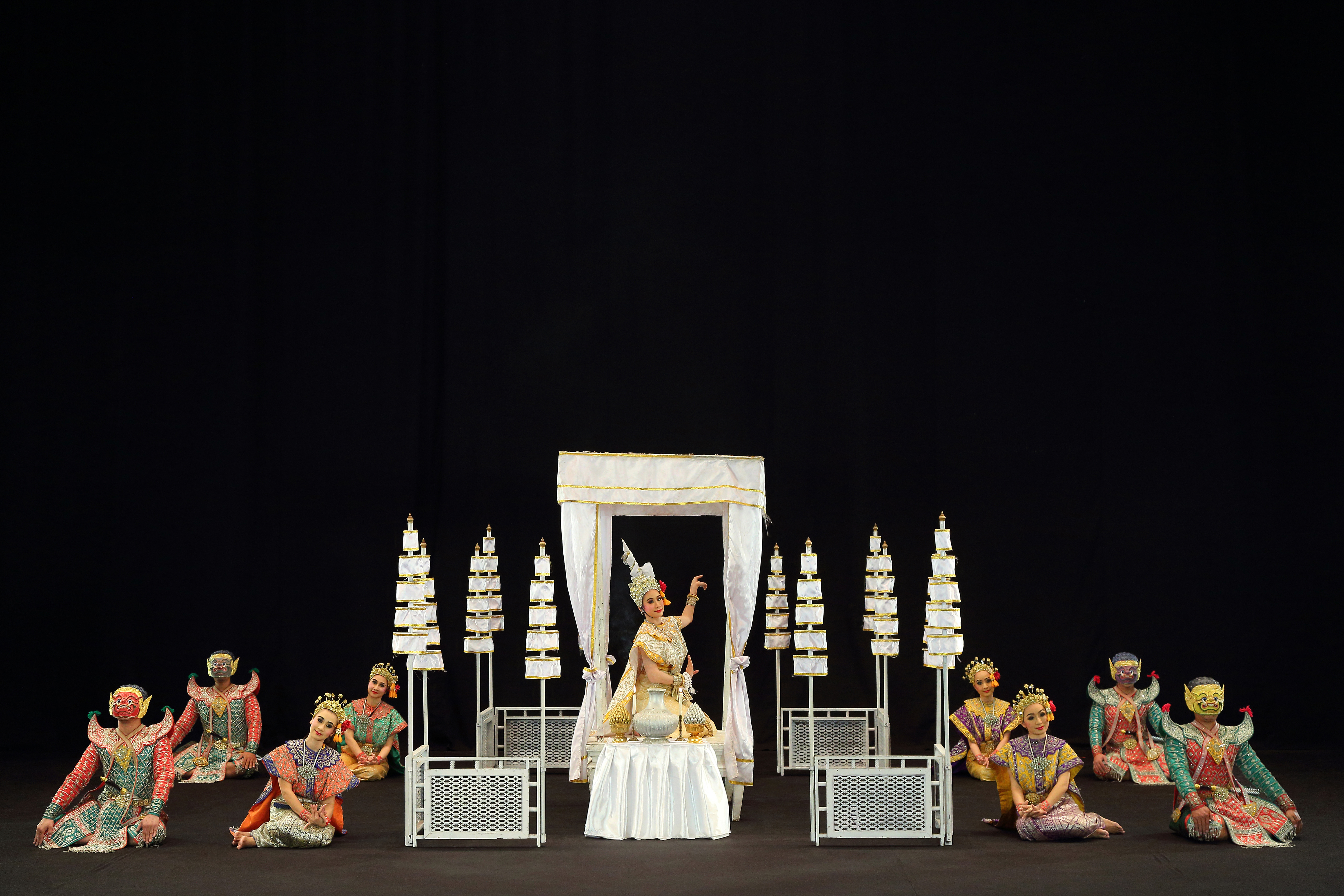 เวทีที่ 2 การแสดงละคร หุ่นหลวง หุ่นกระบอก ประกอบด้วย ละคร เรื่องพระมหาชนก การแสดงหุ่นหลวง ตอนหนุมานเข้าห้องนางวานรินทร์ การแสดงหุ่นกระบอก เรื่องพระอภัยมณี ตอนกำเนิดสุดสาครจนถึงเข้าเมืองการะเวก รำกิ่งไม้เงินทอง ละครใน เรื่องอิเหนา ตอนบุษบาชมศาล – อิเหนาตัดดอกไม้ – ฉายกริช – ท้าวดาหาบวงสรวง
