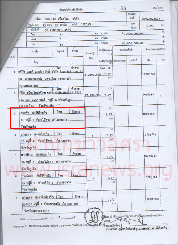 จากข้อมูล นายธวัชเกี่ยวโยง กับ บริษัท แคป พังงา พาร์ค จำกัด สำหรับกระบวนการออก น.ส.3 ก.แปลงนี้นั้น อยู่ระหว่างการสอบสวนของดีเอสไอ
