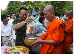 2-4 แม่ทัพภาคที่ 4 พร้อมข้าราชการชั้นผู้ใหญ่ร่วมทำบุญตักบาตรวันมาฆบูชา ขณะที่พุทธศาสนิกชนต้องเวียนเทียนเวลากลางวันเพื่อป้องกันความรุนแรง (ภาพทั้งหมดโดย อะหมัด รามันห์สิริวงศ์)