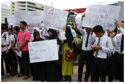 บรรยายภาพ : 1-4 การชุมนุมประท้วงของกลุ่มนักศึกษาประณามเหตุการณ์พลทหารกระทำอนาจารสาวมุสลิม พร้อมเรียกร้องให้ยกเลิก พ.ร.ก.ฉุกเฉินฯ และถอนทหาร (ภาพโดย อะหมัด รามันห์สิริวงศ์)