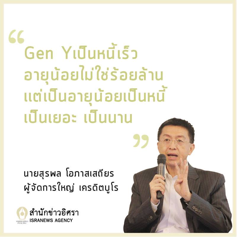 อีกทั้งยังพบว่า มีคน Gen-Y จ่ายหนี้บ้านไม่ได้กว่า 6 หมื่นกว่าบัญชี คน Gen-X จ่ายหนี้บ้านไม่ได้ประมาณ 1.2 แสนบัญชี คนยุค baby boomer ตัวเลขต่ำกว่า 2 หมื่นบัญชี”