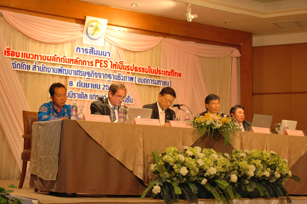 เมื่อเร็วๆนี้ สำนักงานพัฒนาเศรษฐกิจจากฐานชีวภาพ(สพภ.) จัดสัมมนาเรื่อง “แนวทางผลักดันหลักการ PES ให้เป็นรูปธรรมในประเทศไทย” ณ โรงแรมมิราเคล แกรนด์ กรุงเทพฯ โดยนายอภิวัฒน์ เศรษฐรักษ์ ผู้อำนวยการ สพภ. กล่าวถึงการพัฒนาแนวคิดและรูปแบบของความรับผิดชอบทางสังคม(CSR) ไปสู่การจ่ายค่าตอบแทนคุณระบบนิเวศ(PES) หรือ Payment for Environmental Services ว่าคือการจัดสรรค่าตอบแทนให้กับชุมชนหรือผู้ที่ดูแลรักษาทรัพยากรธรรมชาติ เพื่อเป็นหลักประกันความยั่งยืนของฐานทรัพยากร ที่มนุษย์จะได้ประโยชน์จากระบบนิเวศทั้งทางตรงและทางอ้อม โดยสร้างแรงจูงใจเชิงเศรษฐศาสตร์แก่ชุมชนและท้องถิ่นที่ปกป้องดูแลทรัพยากรธรรมชาติและสิ่งแวดล้อมให้คงไว้ซึ่งความสมบูรณ์ของระบบนิเวศต่อไป