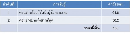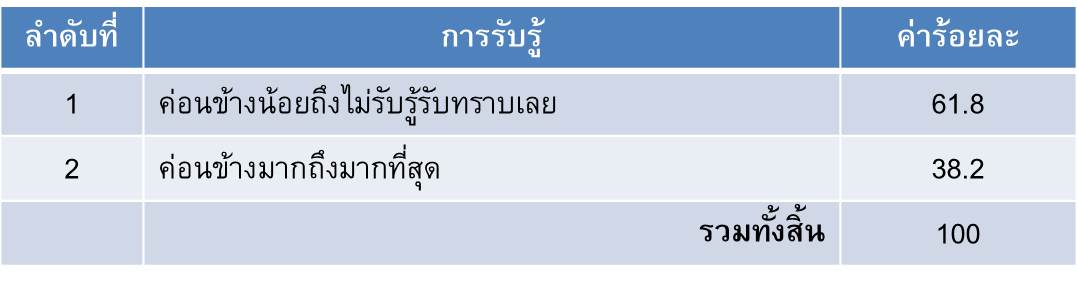 ตารางที่ 6 แสดงค่าร้อยละของตัวอย่างที่ระบุ การรับรู้ต่อข่าวรัฐบาลในการแก้ไขปัญหาปากท้อง ค่าครองชีพของชาวบ้าน