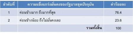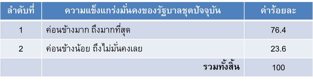 ตารางที่ 1 แสดงค่าร้อยละของตัวอย่างที่ระบุ ความแข็งแกร่งมั่นคงของรัฐบาลชุดปัจจุบัน