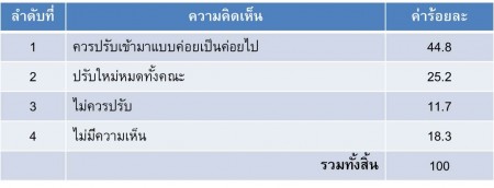 “สังคมไทยเวลานี้จึงจำเป็นต้องได้รับการปฏิรูปซึ่งเป็นเรื่องที่ยากเกินกว่า อำนาจพิเศษจะทำได้ ดังนั้นต้องกลับไปเริ่มที่ฐานประชาชนขนาดใหญ่ของประเทศที่ถือว่าเป็นพลังแผ่นดินอย่างแท้จริง ทำให้ชาวบ้านเกิดการรับรู้ข้อมูลความเป็นจริงที่รอบด้านและเข้าใจ เกิดความตระหนัก ยอมเสียสละ ออกมาจากโลกของตนเองสู่โลกภายนอกที่ต้องการเห็นปฏิบัติการของภาคประชาชน (Public Operations) และภาคประชาสังคม เชื่อมโยงรัฐบาล กลุ่มผลประโยชน์และเจ้าหน้าที่รัฐให้เร่งดำเนินการเพื่อความสุขมวลรวมของสาธารณชนที่มีความหลากหลาย (Diversity) ทั้งความเชื่อ ทัศนคติ ชาติพันธุ์ ชนชั้นและรูปแบบการดำเนินชีวิตที่แตกต่าง เพราะการดำรงความหลากหลายให้อยู่ได้ในเอกภาพของความมั่นคงภายในประเทศนั้นต้องอาศัยแรงผลักดันจากทุกภาคส่วน ผลที่ตามมาคือ สภาวะ “ชนชั้นต้องสงสัย” ของรัฐบาลและเจ้าหน้าที่รัฐน่าจะลดลง กลายเป็นทางออกอีกแนวทางหนึ่งของสภาวะขัดแย้งแตกแยกของคนในสังคมไทยเวลานี้” ผอ.เอแบคโพลล์ กล่าว