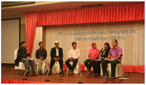 วงเสวนา สกว.ทบทวนวรรณกรรมสามจังหวัดใต้ พบงานวิจัยมีมากเกือบ 600 ฉบับ แต่มีผลกับการแก้ไขปัญหาจริงน้อยมาก เผยงานวิจัยเกี่ยวกับกระบวนการยุติธรรมมีแค่ชิ้นเดียว ทั้งๆ ที่เป็นปัญหาใหญ่ ส่วนการศึกษาเกี่ยวกับอิสลามภิวัฒน์เพื่อตอบโจทย์สังคมชายแดนใต้ไม่มีเลย แถมชาวบ้านไม่ค่อยได้มีโอกาสพูด เสนอมิติใหม่ทำงานวิจัยเพื่อท้องถิ่น สนับสนุนประชาชนลุกขึ้นมาศึกษาและค้นหาวิธีแก้ไขปัญหาของตนเอง