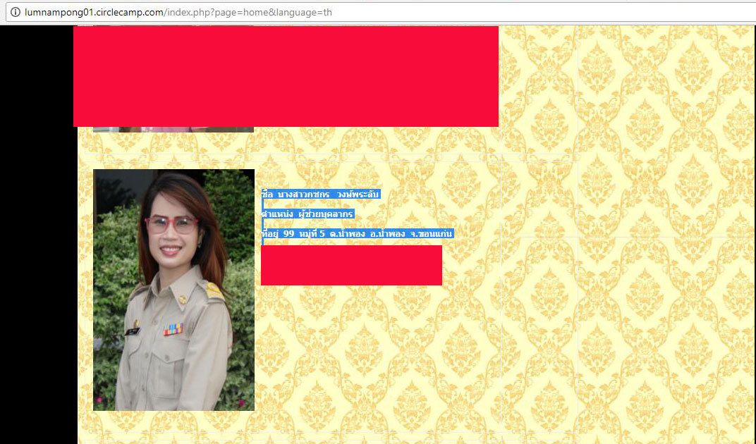 ขณะที่จากการตรวจสอบข้อมูลในเว็บไซต์ของเทศบาลลำน้ำพอง ส่วนของบุคลากรสำนักปลัดเทศบาลลำน้ำพอง (http://lumnampong01.circlecamp.com/index.php?page=home&language=th)