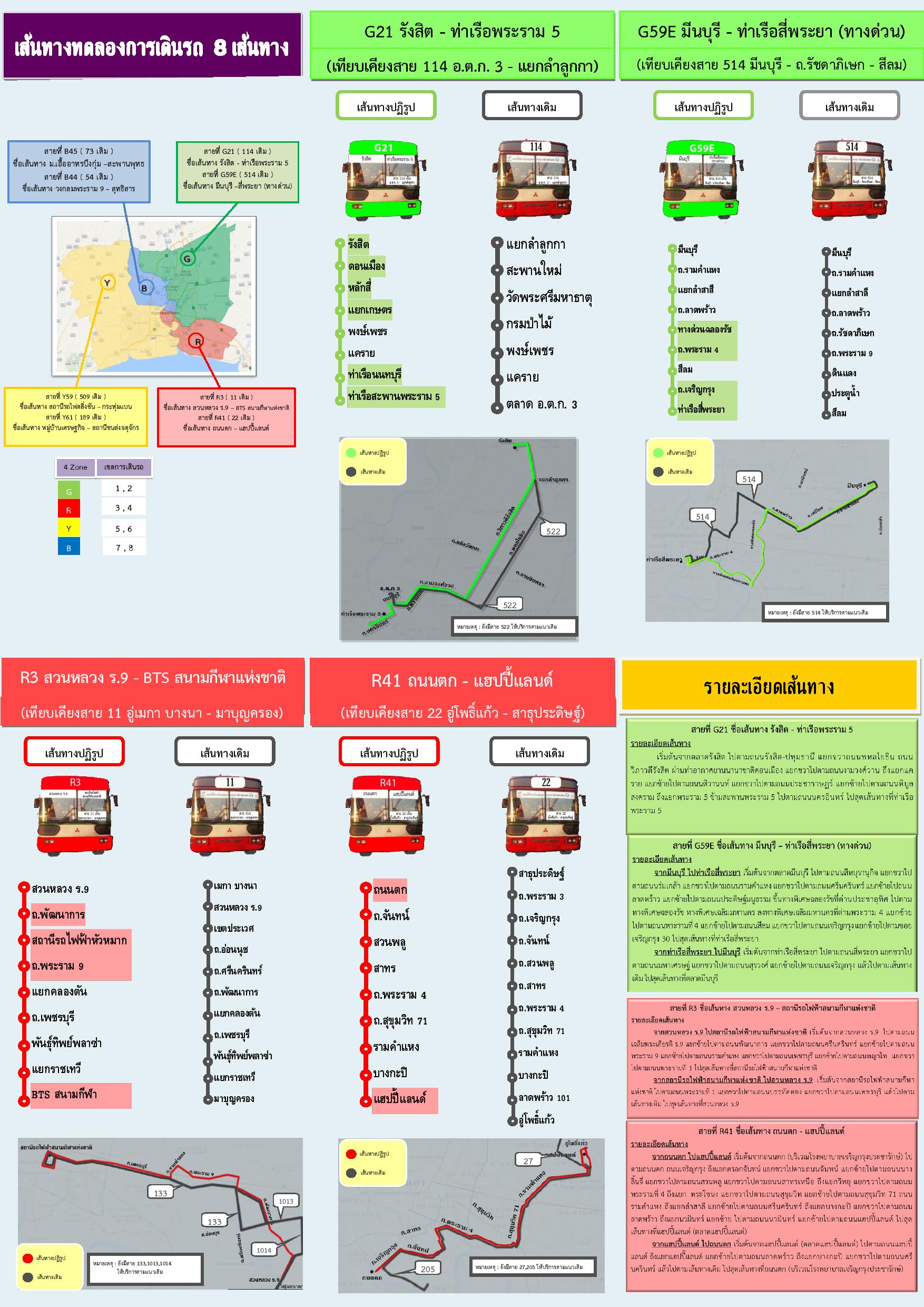 ผู้สื่อข่าวรายงานว่า กรมการขนส่งทางบก จะดำเนินการตามแผนปฏิรูประบบรถโดยสารประจำทางในเขตกรุงเทพมหานครและปริมณฑล โดยกำหนดระยะเวลาทดลองเดินรถทั้ง 8 เส้นทาง ระหว่างวันที่ 15 สิงหาคม – 15 กันยายน 2560 ตั้งแต่เวลา 06.30 น. – 18.30 น. โดยประชาชนผู้ใช้บริการสามารถสังเกตบริเวณด้านหน้ารถและด้านข้างรถจะมีแถบสีแสดงพื้นที่ให้บริการและเส้นทาง รวมถึงแสดงชื่อเส้นทางใหม่ ควบคู่กับเลขสายและชื่อเส้นทางเดิม พร้อมจัดทำสื่อประชาสัมพันธ์ติดตั้งบริเวณป้ายรถเมล์ บนรถ และผ่านสื่อทุกช่องทาง รวมถึงจัดเจ้าหน้าที่กรมการขนส่งทางบกและ เจ้าหน้าที่ ขสมก. ประจำพื้นที่ให้บริการเพื่ออำนวยความสะดวกและให้ข้อมูล