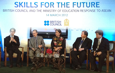 วันที่ 14 มีนาคม กระทรวงศึกษาธิการ ร่วมกับ บริติช เคานซิล องค์กรความร่วมมือระหว่างประเทศอังกฤษและนานาประเทศด้านการศึกษา วัฒนธรรม และวิทยาการ แถลงข่าวเปิดตัว โครงการ “Skills for the Future : British Council and the Ministry of Education Response to ASEAN” เปิดโลกทัศน์เสริมทักษะสู่อนาคต โดยมี ฯพณฯ อาชีฟ อาหมัด เอกอัครฑูตสหราชอาณาจักร ประจำประเทศไทย นายมาร์ติน เดวิชั่น ประธานผู้บริหารบริติช เคานซิล ดร.เบญจลักษณ์ น้ำฟ้า รองเลขาธิการคณะกรรมการการศึกษาขั้นพื้นฐาน (สพฐ.) และนายสมบัติ แสงสว่างสัจกุล รองเลขาธิการสำนักงานคณะกรรมการการอาชีวศึกษา (สอศ.) ร่วมงาน