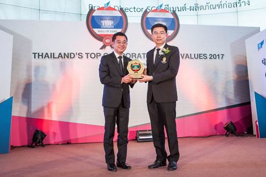 วันที่ 16 ส.ค. 2560 อนุวัตร เฉลิมไชย Brand Director เอสซีจี ซิเมนต์-ผลิตภัณฑ์ก่อสร้าง รับรางวัล Thailand’s Top Corporate Brand Value Hall of Fame Award 2017 จากคณะพาณิชยศาสตร์และการบัญชี จุฬาลงกรณ์มหาวิทยาลัย โดย เอสซีจี เป็นบริษัทที่มีมูลค่าแบรนด์สูงสุดจากการวัดมูลค่าแบรนด์องค์กรในหมวดวัสดุก่อสร้างอย่างต่อเนื่องเป็นเวลา 5 ปี นับเป็นแบรนด์ที่มีเสถียรภาพและมั่นคง ภายใต้สภาพแวดล้อมของตลาดและธุรกิจที่มีการเปลี่ยนแปลงและการแข่งขันสูง