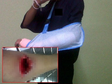 “ทางโรงพยาบาลปากเกร็ดรับตัวคนเจ็บไว้ กระทั่งเวลาประมาณ 10.00 น.ของวันที่ 14 มี.ค. จึงแจ้งว่าไม่สามารถผ่าตัดได้ เนื่องจากไม่พร้อม และแจ้งว่าคนเจ็บมีโรคประจำตัวคือโรคหอบเกรงจะเกิดอันตรายแทรกซ้อน จึงจะประสานงานติดต่อโรงพยาบาลที่ 5 ที่มีเครื่องมือพร้อมกว่า แต่ผมรอไม่ได้แล้วจึงนำคนเจ็บส่งโรงพยาบาลเกษมราษฎร์จนได้รับการผ่าตัดเวลาประมาณ 18.00 น. รวมแล้วเป็นเวลากว่า 25 ชั่วโมงที่ไม่ได้รับการรักษา ขณะที่ค่ารักษาพยาบาลที่เกษมราษฎร์ประมาณ 60,000 กว่าบาทจากประเมินเบื้องต้น 90,000 บาท ซึ่งตลอดเวลาที่ตระเวนพาคนเจ็บรักษา โรงพยาบาลไม่มีสายคล้องแขนให้เราต้องประคองแขนคนเจ็บหอบหิ้วกันไปเองตามยถากรรมอย่างน่าเวทนา”