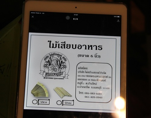 “ผมจะใช้เครื่องจักรแทนแรงงานคนได้ ก็ต่อเมื่อผมเปลี่ยนรูปแบบหมูปิ้ง ต้องเป็นชิ้น หรือลูก ให้เหมือนลูกชิ้นถึงทำได้ แต่หากยังใช้ภูมิปัญญาไทย หั่นหมูบางๆ และเสียบด้วยไม้แบบนี้ เครื่องจักรยังทำไม่ได้”