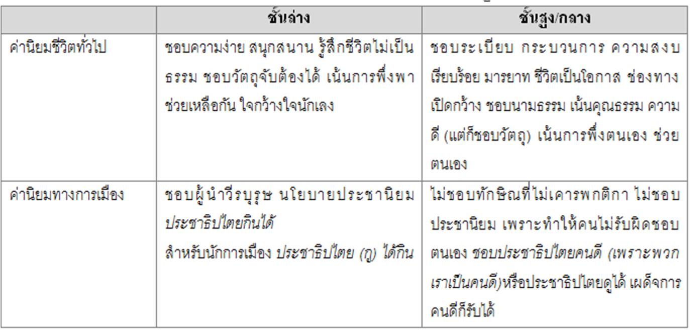 ความแตกต่างในค่านิยมระหว่างชนชั้นล่าง และชนชั้นสูง/กลาง