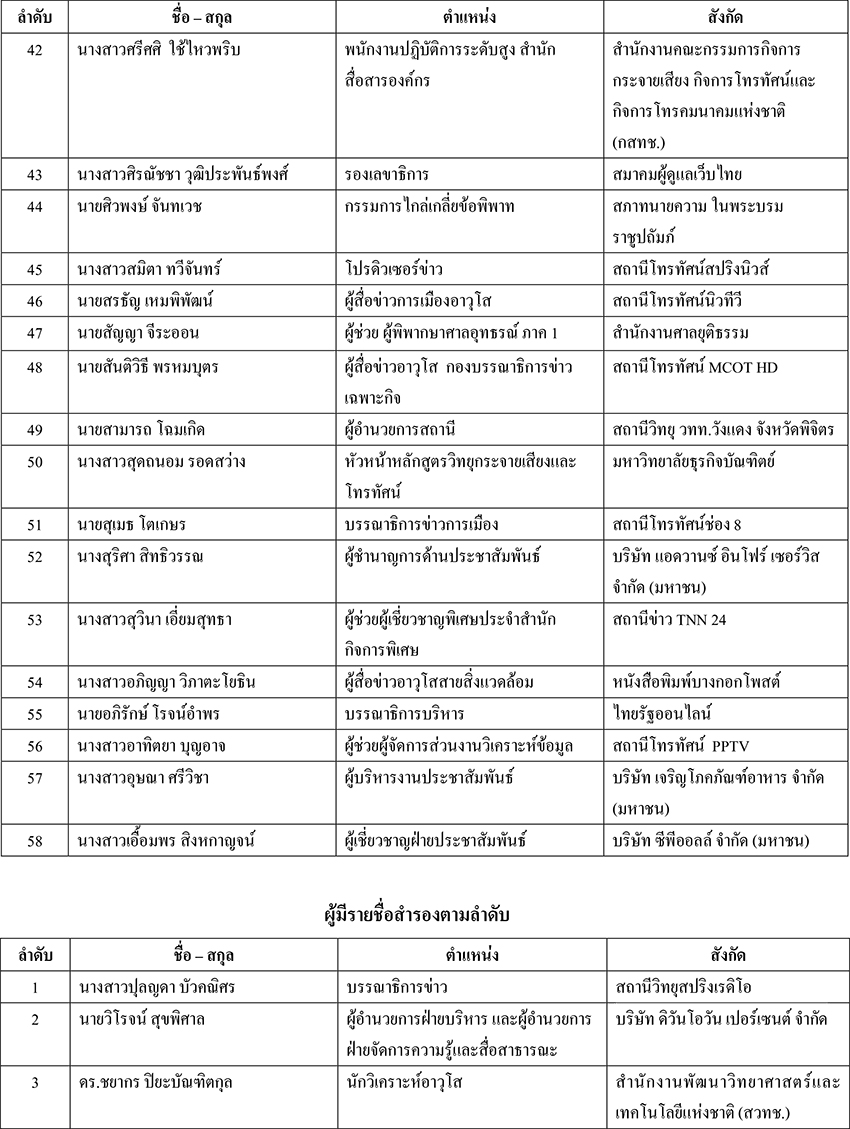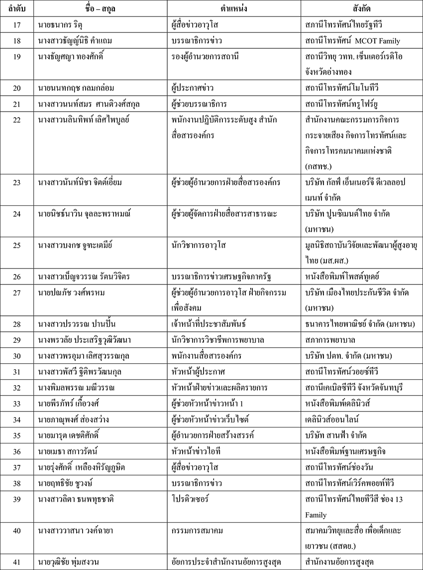 เรื่อง รายชื่อผู้มีสิทธิ์เข้ารับการอบรมหลักสูตรผู้บริหารการสื่อสารมวลชน