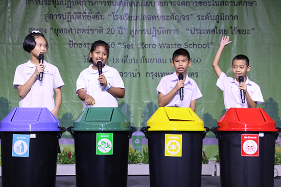 นายบุญรักษ์ ยอดเพชร รองเลขาธิการคณะกรรมการการศึกษาขั้นพื้นฐาน (กพฐ.) รักษาราชการแทนเลขาธิการ กพฐ. กล่าวว่า จากข้อมูลสถานการณ์ขยะมูลฝอยของกรมควบคุมมลพิษ ปี พ.ศ. 2559 พบว่า แนวโน้มของปริมาณขยะมูลฝอยทั่วประเทศเพิ่มขึ้น 27.06 ล้านตัน คิดเป็น 1.14 กิโลกรัมต่อคนต่อวัน สะท้อนให้เห็นต้นเหตุแห่งปัญหาขยะที่เกิดจากกิจกรรมในชีวิตประจำวัน ซึ่งการกำจัดขยะจากเทศบาลหรือการนำขยะไปกำจัดหรือทำลายเป็นการกำจัดที่กลางทางและปลายทาง ดังนั้น ในทางที่ถูกต้องคือการแก้ปัญหาที่ต้นทาง โดยต้องปรับเปลี่ยนพฤติกรรมของคนเป็นหลัก เช่น การคัดแยกขยะต้องเริ่มจากที่บ้าน สถานศึกษาเองก็ต้องเป็นต้นแบบในการให้ความรู้ที่ถูกต้อง รวมถึงบริบทของสังคมและสิ่งแวดล้อมที่เอื้ออำนวยต่อการสร้างวินัยด้านการลดใช้ทำให้ขยะเกิดขึ้นให้น้อยลง ซึ่งถือเป็นการแก้ปัญหาในระยะยาว โดยจะต้องทำให้เป็นระบบเพื่อความอย่างยั่งยืน