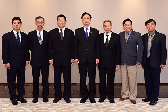 ดร.องอาจ เดชอิทธิรัตน์ (ที่ 3 จากขวา) รองกรรมการผู้จัดการใหญ่อาวุโส เครือเจริญโภคภัณฑ์ ให้การต้อนรับ มร.ถง เจิ้น หยวน (กลาง) ผู้แทนรัฐบาลไต้หวัน ประจำประเทศไทย และคณะ ในโอกาสเข้าเยี่ยมชมกิจการของเครือ ซี.พี.และแลกเปลี่ยนความคิดเห็น ณ อาคารทรูทาวเวอร์
