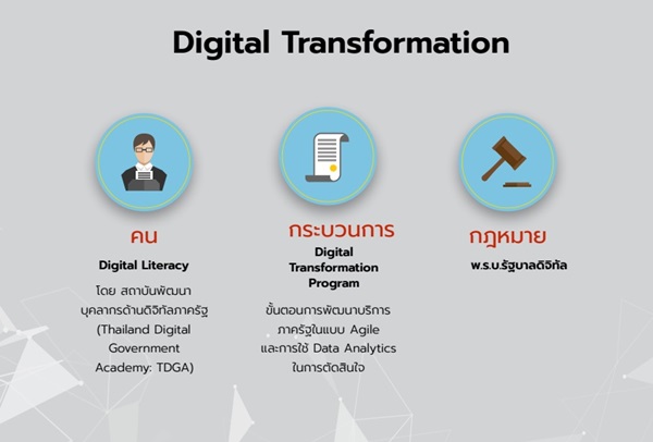 - เปลี่ยนผ่าน การให้บริการภาครัฐต้องเปลี่ยนวิธี เช่น จากต้องวาดรูปแผนที่บ้านเวลาไปติดต่อกับหน่วยงานราชการ อนาคตอาจแค่กด GPS ตำแหน่งบ้านของประชาชนลงในระบบภาครัฐ นี่คือการเปลี่ยนวิธีคิดการให้บริการประชาชน![]()
