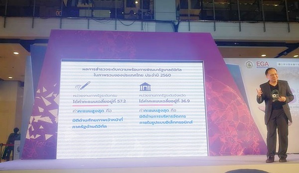 การก้าวสู่รัฐบาลดิจิทัลเราต้องรู้ตัวเอง หน่วยงานภาครัฐของไทยอยู่ตรงไหน มีความพร้อมทางด้านดิจิทัลมากแค่ไหน โดยผลการสำรวจระดับความพร้อมการพัฒนารัฐบาลดิจิทัลของประเทศไทยในปี 2560 กว่า 200 กรม ถึงความพร้อม บุคลากรภาครัฐ การบริการออนไลน์ (800 บริการ) ระบบหลังบ้านของภาครัฐ โครงสร้างพื้นฐาน ความมั่นคงปลอดภัย และการนำเทคโนโลยีใหม่ๆ มาใช้ พบว่า หน่วยงานภาครัฐระดับกรมได้คะแนนเฉลี่ยอยู่ที่ 57.2 ค่าคะแนนสูงสุด คือ มิติโครงสร้างพื้นฐานที่มีความมั่นคงปลอดภัยและมีประสิทธิภาพ และหน่วยงานภาครัฐระดับจังหวัด ได้ค่าคะแนนเฉลี่ยอยู่ที่ 36.6 ค่าคะแนน สูงสุด คือ มิติการบริหารจัดการภายใต้รูปแบบอิเล็กทรอนิกส์