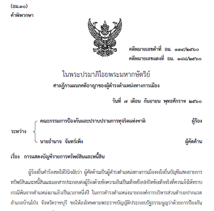 (คดีหมายเลขแดงที่ อม. 187/2560-7 ก.ย. 2560)