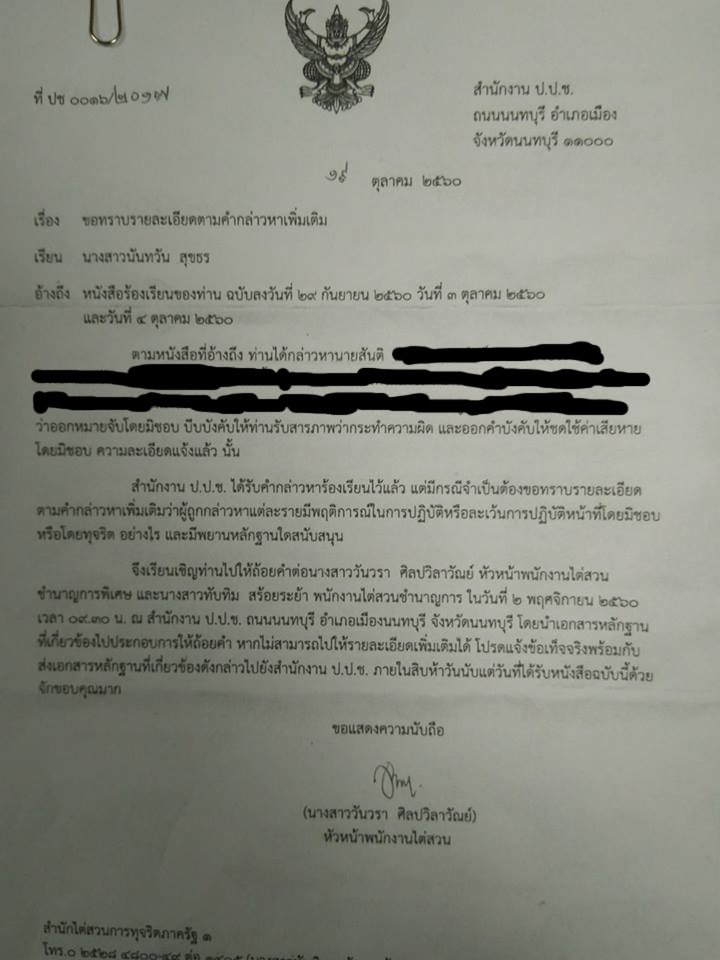 2. ยื่นร้องเรียนต่อ ป.ป.ช.เพื่อให้เอาผิดกับบุคคลที่เกี่ยวข้องกับการเปลี่ยนแปลงข้อมูลเอกสารสำคัญส่วนบุคคลของตนในระหว่างถูกคุมขัง