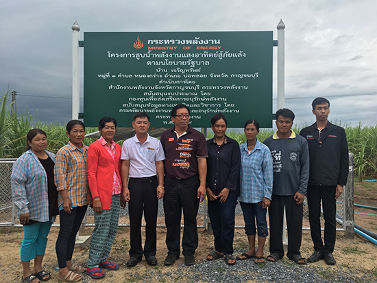 สำนักงานพลังงานจังหวัดกาญจนบุรี กระทรวงพลังงาน นำคณะสื่อมวลชนร่วมศึกษาดูงานโครงการสูบน้ำพลังงานแสงอาทิตย์สู้ภัยแล้ง ภายหลังดำเนินการส่งเสริมการใช้พลังงานทดแทนในระดับชุมชนตามศักยภาพของพื้นที่ในระยะแรกแล้วเสร็จ 21 ระบบ กำลังการผลิตรวม 55,000 วัตต์ ช่วยลดการใช้พลังงานไฟฟ้า 95,356 หน่วย/ปี คิดเป็นเงิน 381,425 บาท/ปี ลดการใช้น้ำมันดีเซล 9,426 ลิตรต่อปี คิดเป็นเงิน 248,760 บาท/ปี พร้อมเดินหน้าขยายผลดำเนินการในระยะที่สองแล้วเสร็จเร็วๆ นี้