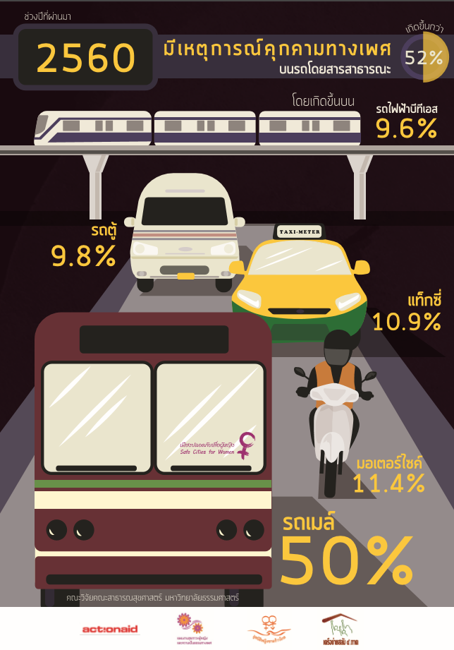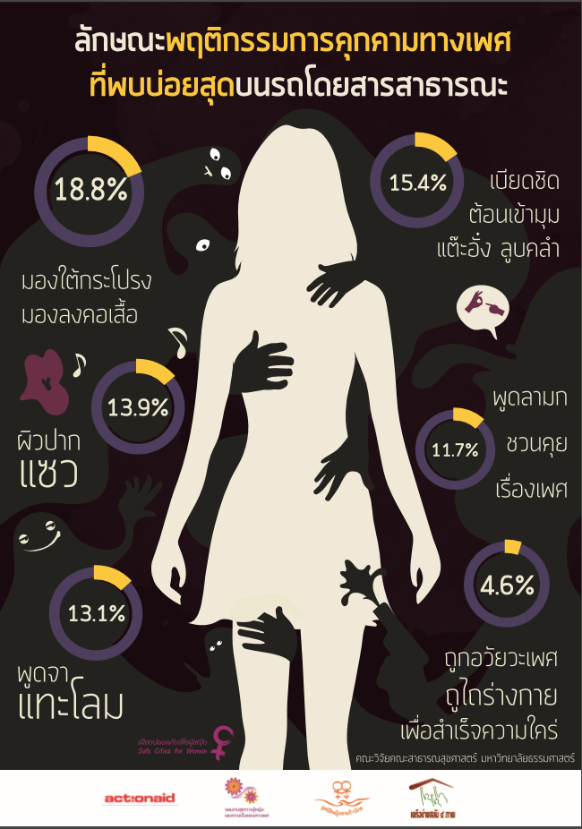 การสำรวจเชิงลึกเกี่ยวกับสถานการณ์ดังกล่าวครั้งแรกในไทย เป็นที่น่าตกใจว่า บนรถเมล์ที่มีผู้คนมากมายและเป็นรถขนส่งสารธารณะที่ผู้คนใช้บริการมากที่สุดนั้นเกิดการคุกคามทางเพศมากที่สุด