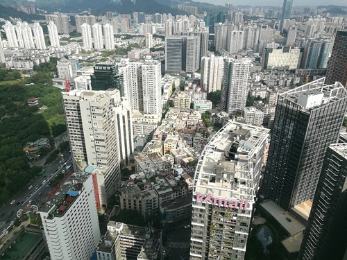 ภาพมุมสูง จากชั้น 40 ตึก kk100 เมืองเซินเจิ้น
