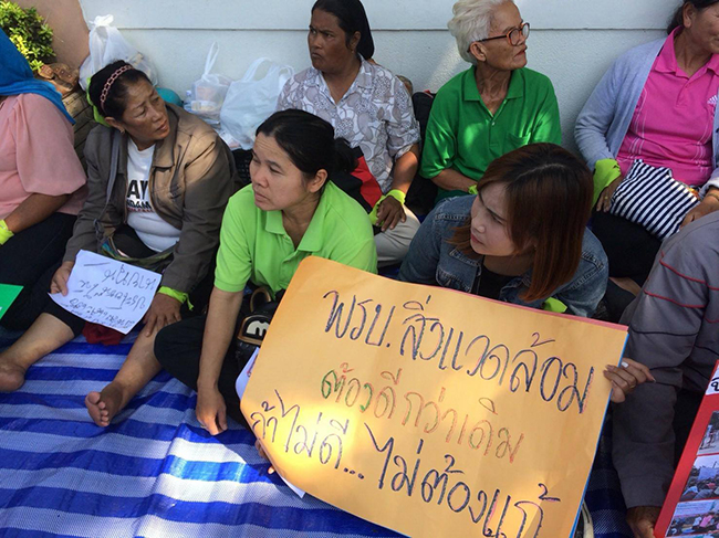 เมื่อวันที่ 6 ธ.ค. 2560 บริเวณหน้าทำเนียบรัฐบาล เครือข่ายประชาชนเพื่อการพัฒนาที่ยั่งยืน รวมตัวชุมนุมเพื่อคัดค้าน ร่างพระราชบัญญัติส่งเสริมและรักษาคุณภาพสิ่งแวดล้อม พ.ศ. ... ที่ปัจจุบันผ่านการเห็นชอบจากคณะรัฐมนตรีและอยู่ในการพิจารณาของสภานิติบัญญัติแห่งชาติ