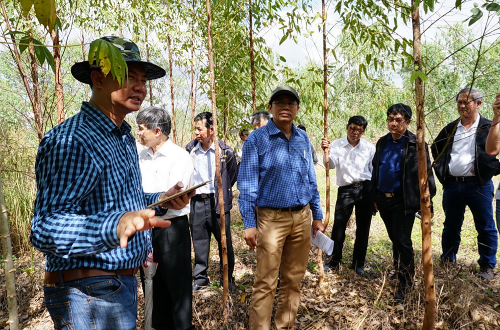 ด้าน ผศ. ดร.รุ่งเรือง พูลสิริ จากคณะวนศาสตร์ มหาวิทยาลัยเกษตรศาสตร์ หัวหน้าโครงการวิจัย “การศึกษารูปแบบที่เหมาะสมในการปลูกยูคาลิปตัสร่วมกับมันสำปะหลังในระบบวนเกษตรในพื้นที่ดินเสื่อมโทรมภาคตะวันออกเฉียงเหนือ” นำชมพื้นที่ปลูกยูคาลิปตัสร่วมกับมันสำปะหลังในแปลงทดลอง เพื่อหวังจะสร้างรายได้เสริมให้กับเกษตรกรผู้ปลูกมันสำปะหลัง ซึ่งนอกจากรูปแบบที่เหมาะสมแล้วนักวิจัยยังต้องนำผลที่ได้มาวิเคราะห์ผลตอบแทนทางเศรษฐศาสตร์ เพื่อหารูปแบบธุรกิจที่นำไปขยายผลได้ และหาแนวทางในการบริหารจัดการพื้นที่เกษตรกรรมสำหรับการส่งเสริมพื้นที่ผลิตพืชอาหารและพืชพลังงานด้วย