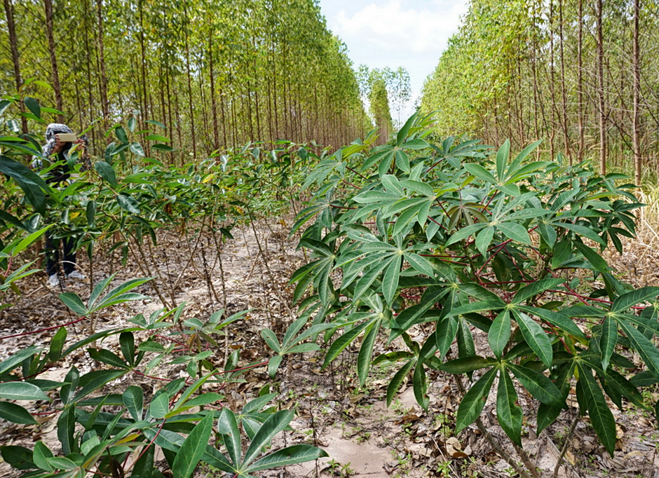 ทั้งนี้ นักวิจัยได้ทดลองแบบสุ่มในบล็อกสมบูรณ์ แบ่งเป็น 3 บล็อก ได้แก่ รูปแบบที่ 1 แปลงปลูกไม้โตเร็ว (ยูคาลิปตัส) ระยะ 3x1 เมตร สลับกับมันสำปะหลัง 1 แถว รูปแบบที่ 2 ไม้โตเร็วระยะ 2x1 เมตร เว้นระยะห่าง 8 เมตร ปลูกมันสำปะหลังระยะปลูก 1x1 เมตร จำนวน 6 แถว และรูปแบบที่ 3 ไม้โตเร็วระยะ 2x1 เมตร จำนวน 3 แถว เว้นระยะห่าง 4 เมตรเพื่อปลูกมันสำปะหลังระยะปลูก 1x1 เมตร จำนวน 3 แถว